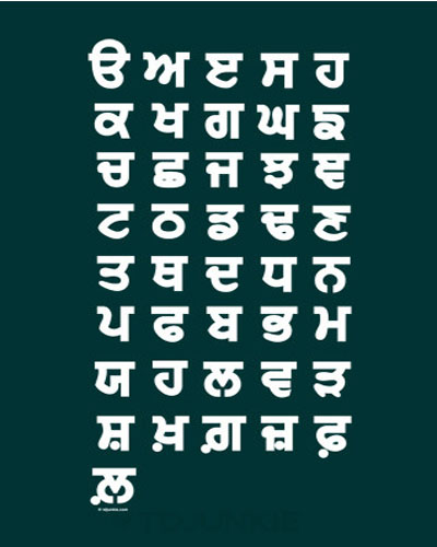 One is the letter of the alphabet of India namely Punjabi Graffiti alphabet. In this graffiti alphabet designs made for the commercial, which is used as a design for a shirt in a T-shirt collection by TDjunkie.