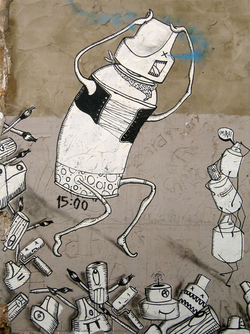 Because street art is usually considered a crime, artists have to work quickly. One of the best ways to do that is to use custom stencils. You do most of the work ahead of time by creating the stencils, then when you get to the site of your future art, you simply hold the stencils up and spray away. This is the style of art that’s most often associated with Banksy. Some of them are simple and probably went up very quickly. Others are quite complex and involve several layers and many colors.