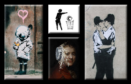 Banksy? He has changed from an internationally known as a subversive graffiti artist - yet manages to maintain a secret identity. He is a counter-cultural prankster, but has art in major cosmopolitan galleries around the globe. Banksy's work has sold to Hollywood celebrities for over a half-million dollars a piece, but much of his subvertising is Freely (and illegally) drawn on public surfaces. He works against the mass media establishment, but has been featured in local, national, international news. He is on Some level clearly a geek at heart but at the Same time his art is always on the cutting edge. The Following seven Fascinating examples illustrate the range of Banksy's life and works through his most controversial and Compelling projects.