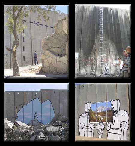 Banksy on the West Bank: Braving threats and even warning shots from Israeli security forces, Banksy managed to make a statement through his works on the West Bank barrier. Reactions were mixed to his contributions to the wall, but the coverage certainly raised global attention. This kind of work shows the development of Banksy from a local subversive to an artist with a global political agenda, reminiscent of the amazing political murals of Belfast, Northern Ireland.